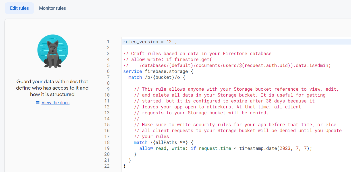 기본적으로 누구나 스토리지의 데이터에 접근, 수정, 삭제가 가능합니다. 세팅의 규칙에서 이러한 설정의 수정이 가능합니다.