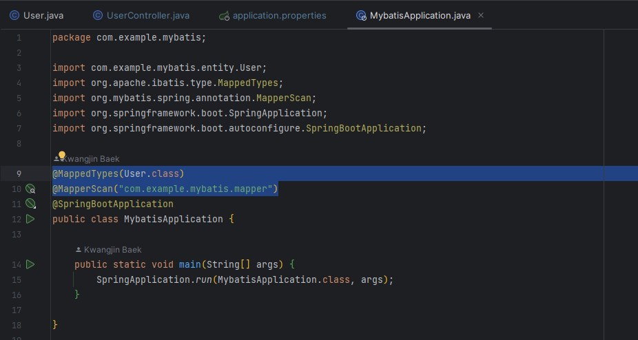 SpringApplication.run(MybatisApplication.class, args);