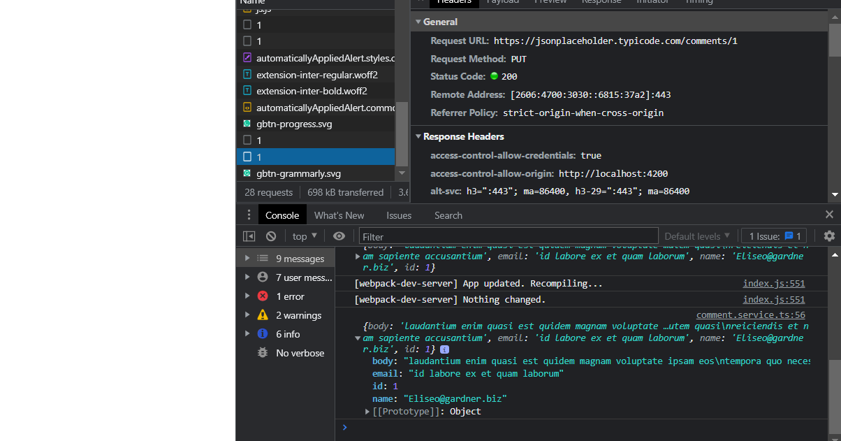 Add editComment function in the service file. To show what is selected, let's also add a GET request that will get one item