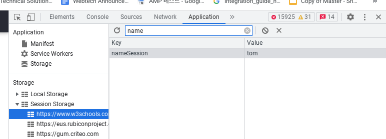 On the menu on the left choose either ‘Local Storage’ or ‘Session Storage’ then search the data by its key.
