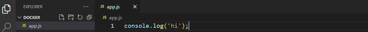 Let's see how we can use docker, create a folder and open your editor. Then add a JavaScript file, write any random message to the console