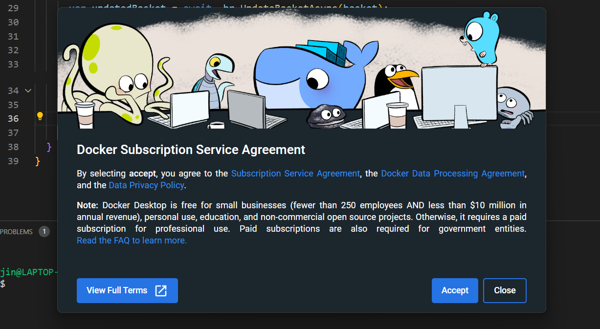 A pop up will appear (If not click the docker launcher icon). Agree the term and you are ready to go