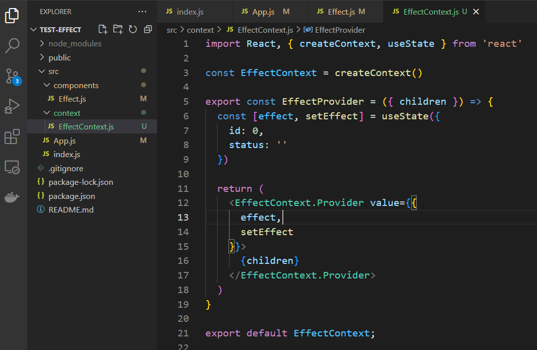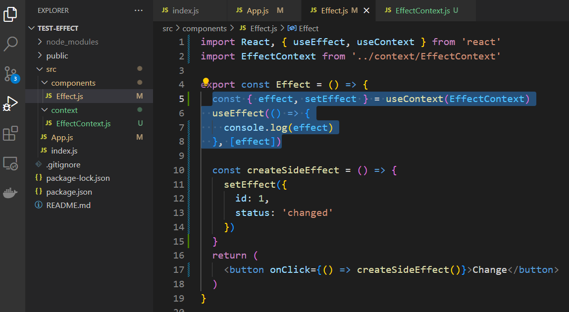 Add a component and initialize the useEffect hook with the status brought in from the context.