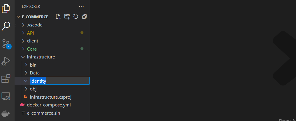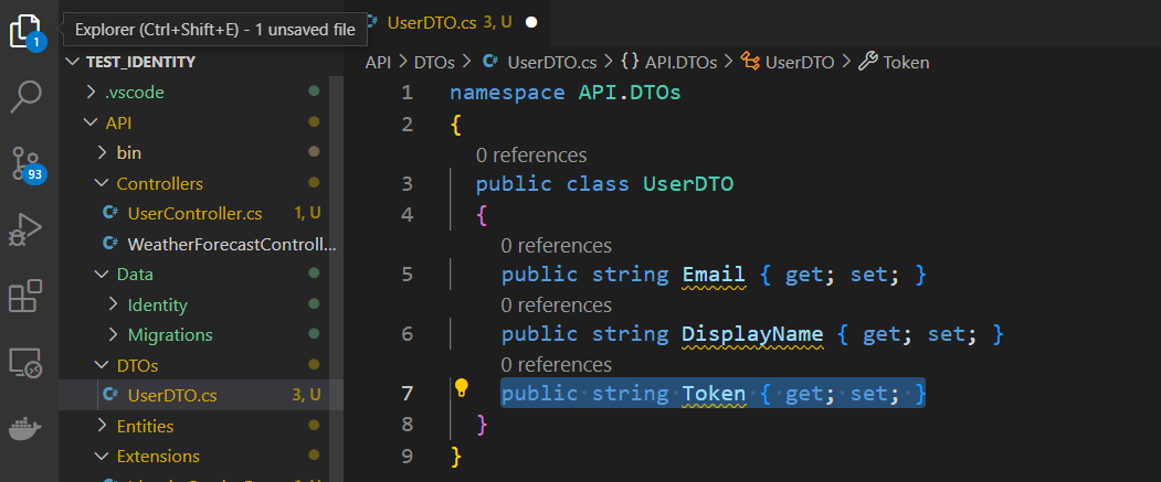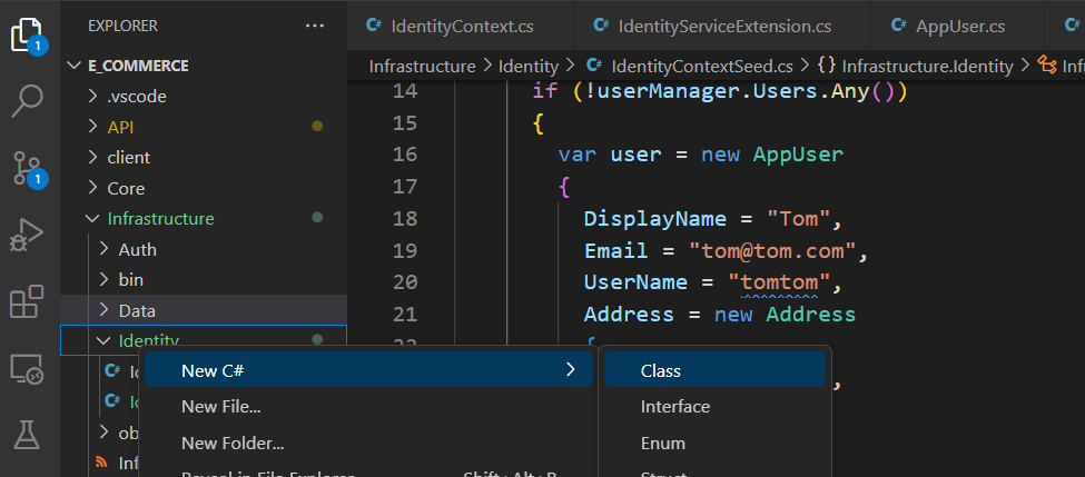 For better organization, add a class file to set up the identity service (this will be added to the Program.cs file)