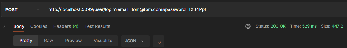 When you add the user information as a parameter separately, this is considered parameters in the URL for that endpoint. The problem with this is, as you can see, the user information is displayed in the URL and this is not ideal.