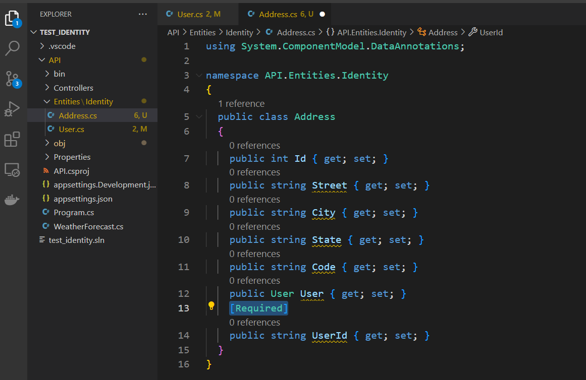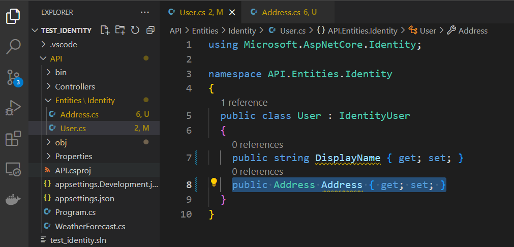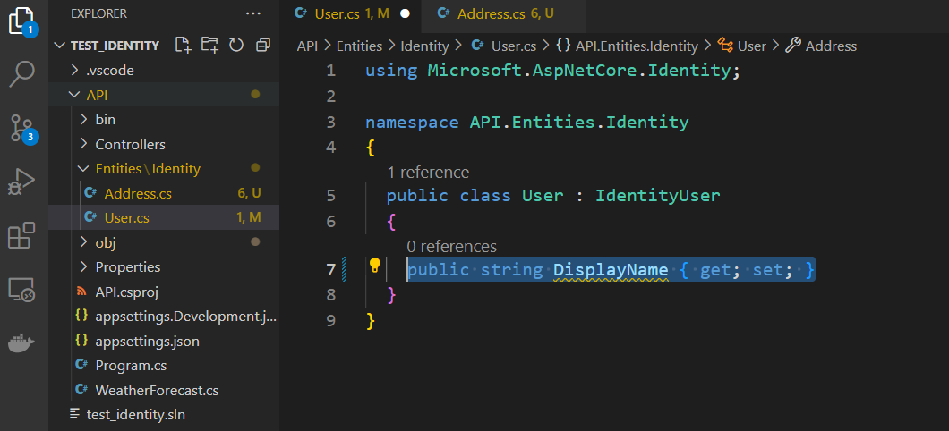 For demonstration, I will add another entity that the user entity references to