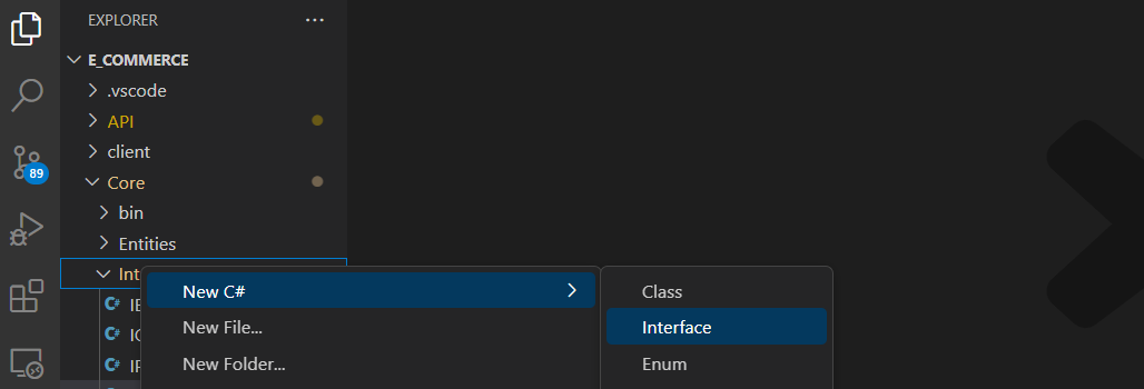 We need a context for communicating with the database for the user. Create a folder for the context