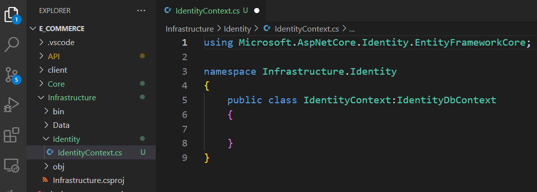 Add the entity we created above as a generic type to the 'IdentityDbContext' interface to reflect the additional properties we added