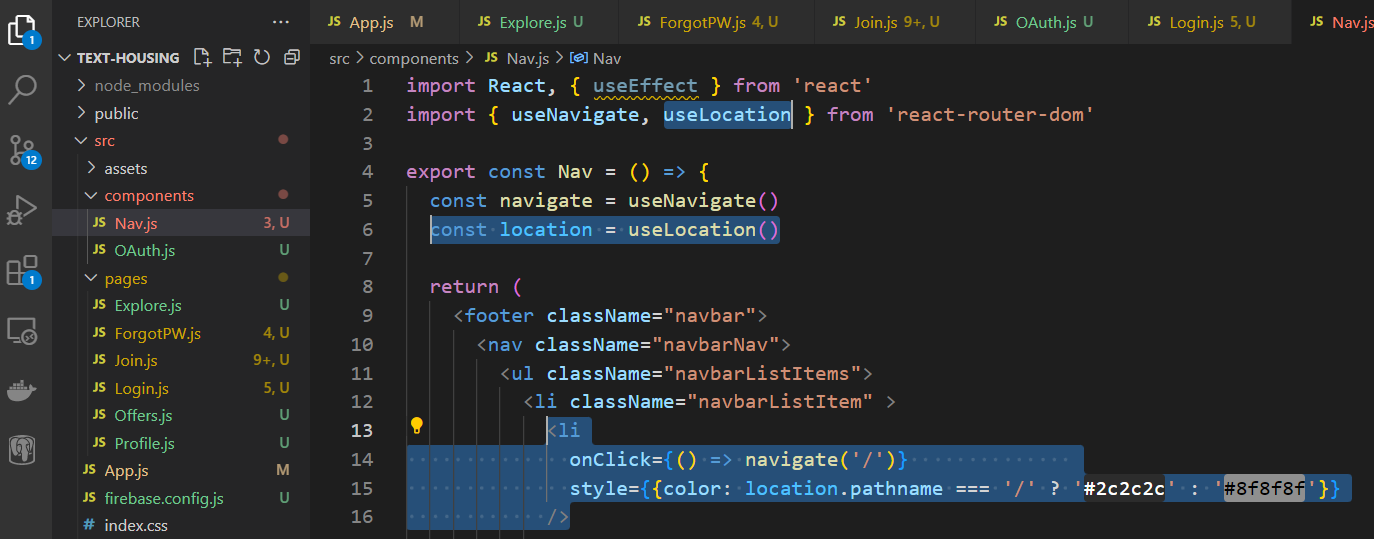 For visual effects for the activated menu item, we can use 'NavLink' which allows us to add a class to a selected menu. Open the navigation component and import 'NavLink'