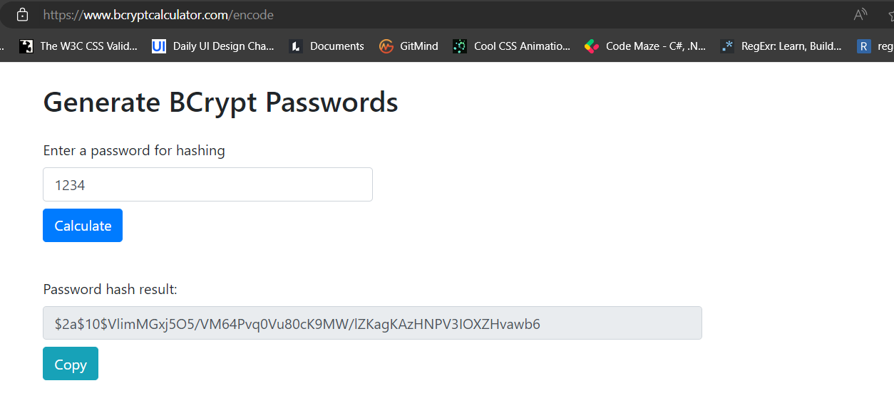 Go to this site https://www.bcryptcalculator.com/