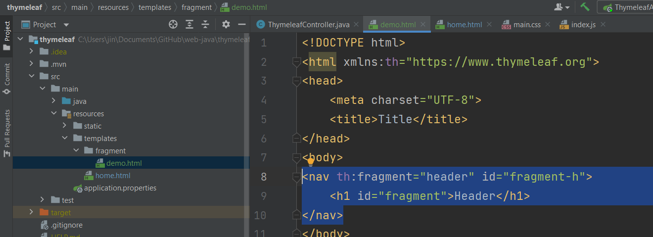 Thymeleaf provides fragments that are equivalent to the components in Angular or React. To set a fragment we used fragment and id attribute