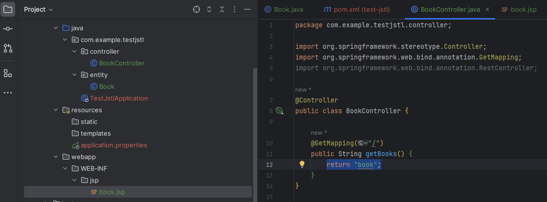In the main -> resource -> template, add a template file with the name you specified in the controller method.