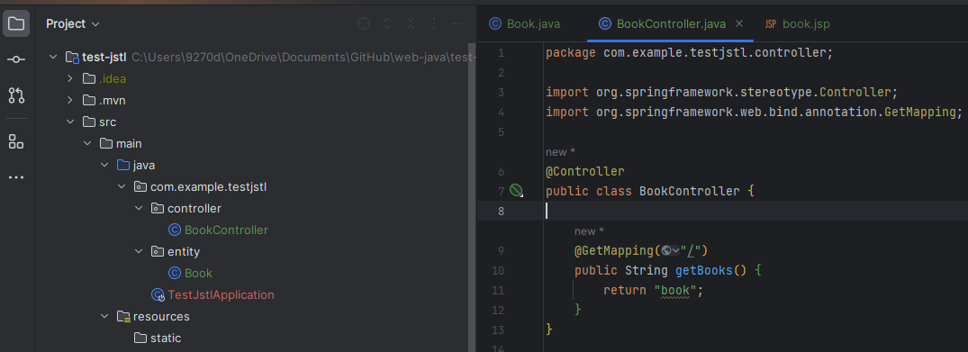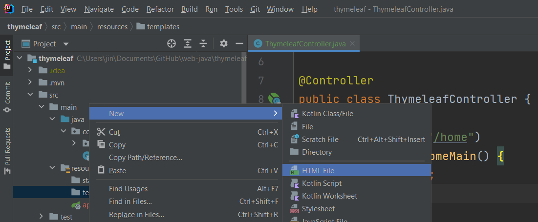 Create a controller package and add a class, then add an endpoint. The string returned from the method is the name of the view template.