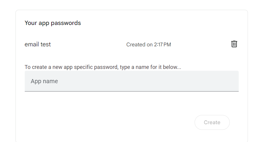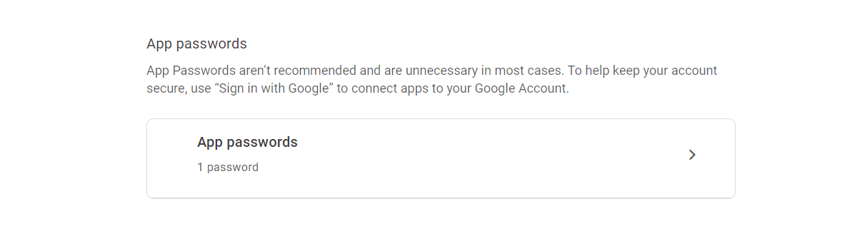 도움말: 앱 비밀번호는 권장되지 않으며 대부분의 경우 필요하지 않습니다. 계정을 안전하게 보호하려면 'Google 계정으로 로그인'을 사용하여 앱을 Google 계정에 연결하세요. 앱 비밀번호란 보안