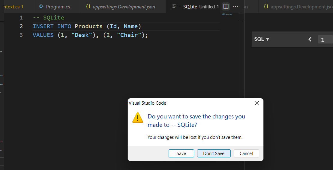Unlike VS, VS Code does not have native features like accessing a database let alone manipulating the data in the database. However, VS Code comes with lots of extensions that make VS Code so powerful yet compact. Sqlite is one of which extensions that we can use to not only see but also manipulate Sqlite data in VS Code.