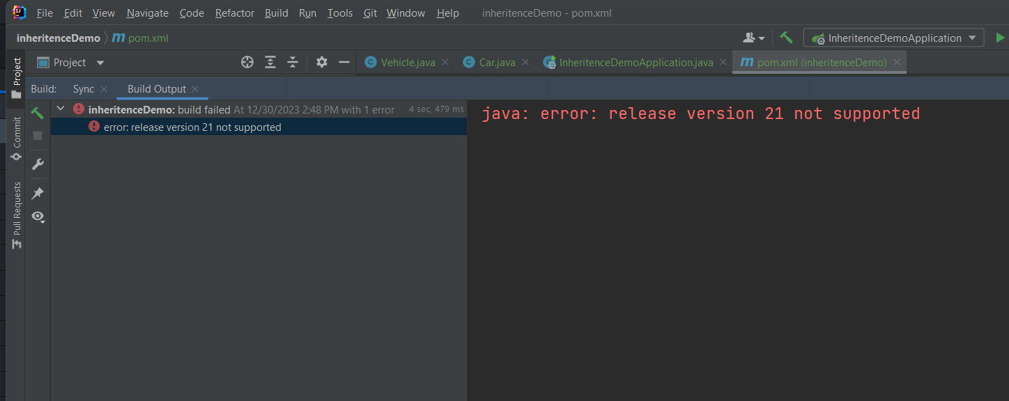 This error occurs when there is a discrepancy between the Java compiler (JDK) version and the Maven file version. Java compiler version must be equal to or higher than the Maven version to avoid this error. One example that you might encounter this error would be when you create a project without checking the Java and packaging version as shown below